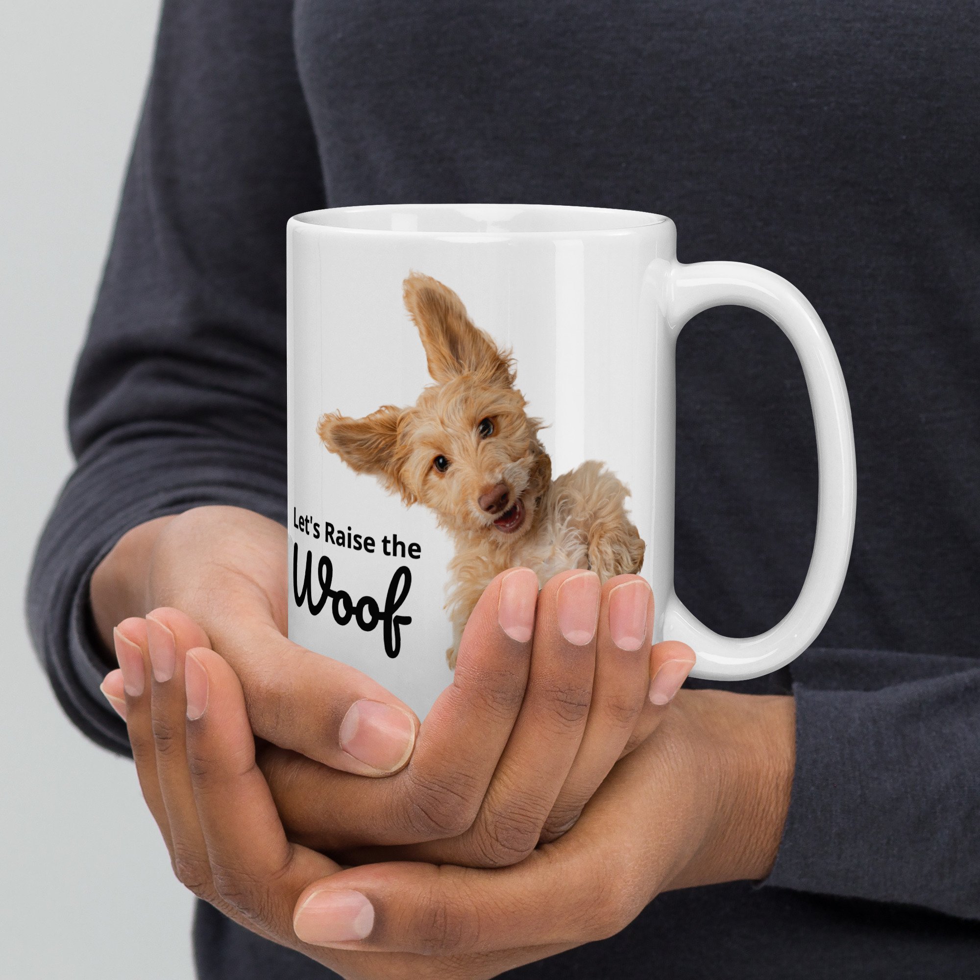 Let's raise the woof 20 oz Coffee Mug. This ceramic mug is sure to put a smile on your face! It’s dishwasher-safe and perfect for everyday use.
